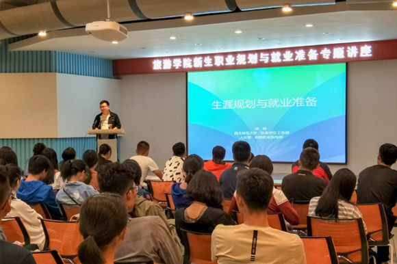 9月18日晚,99905新莆京举办了新生职业规划与就业准备专题讲座。我们有幸邀请了就业指导中心的胡炜老师为17级新生未来的职业规划进行了引导和讲解。