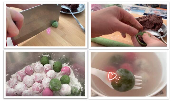 元宵——有着团圆之意,做法简单,口味丰富。这段特殊的延长开学的日子里,让我学到了很多新的技能,做元宵就是其中之一。软糯的外皮包裹熬成沙沙绵绵的红豆,甜而不腻,口感丰富。吃着五彩斑斓的元宵让我忍不住想起抗战疫情一线的工作者们,愿疫情早些结束,让一线的工作者能够尽快和自己的家人团圆。