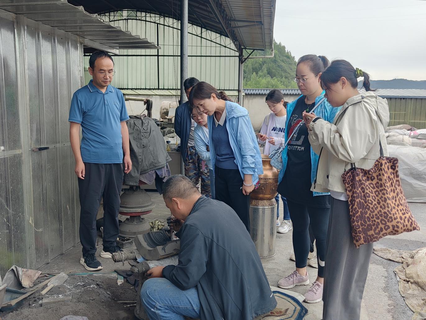 实践团由2位指导老师和5名学生组成。实践团全体成员分工明确,团结协作,积极认真投入此次实践活动中。团队依托学院学科优势,通过走访、调研等方式深入了解各县非遗资源,先后参观了宕昌县中药材博物馆、陶艺馆、岷县文化馆、铸牢中华民族共同体意识教育实践基地、洮砚制作工坊、铜铝铸造产业工坊以及漳县“金钟花儿”民俗文化艺术系列活动等当地优秀的非遗项目与传统文化实践基地。