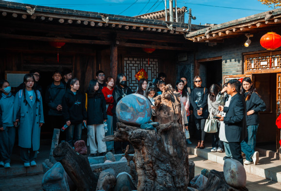 学院师生在河口古镇景区负责人的带领下考察了河口古镇景区的建设情况、主要的旅游景点和旅游资源开发状况,并听取了景区负责人对从专业的角度讲解河口古镇的设计思路、设计路线及景区的未发展规划。