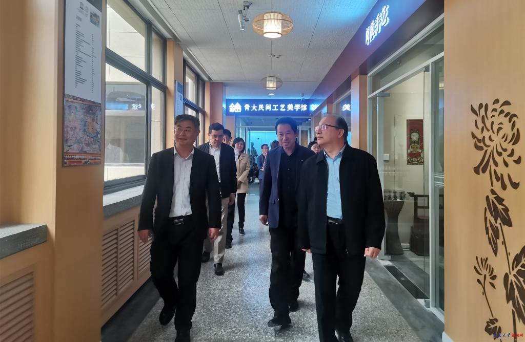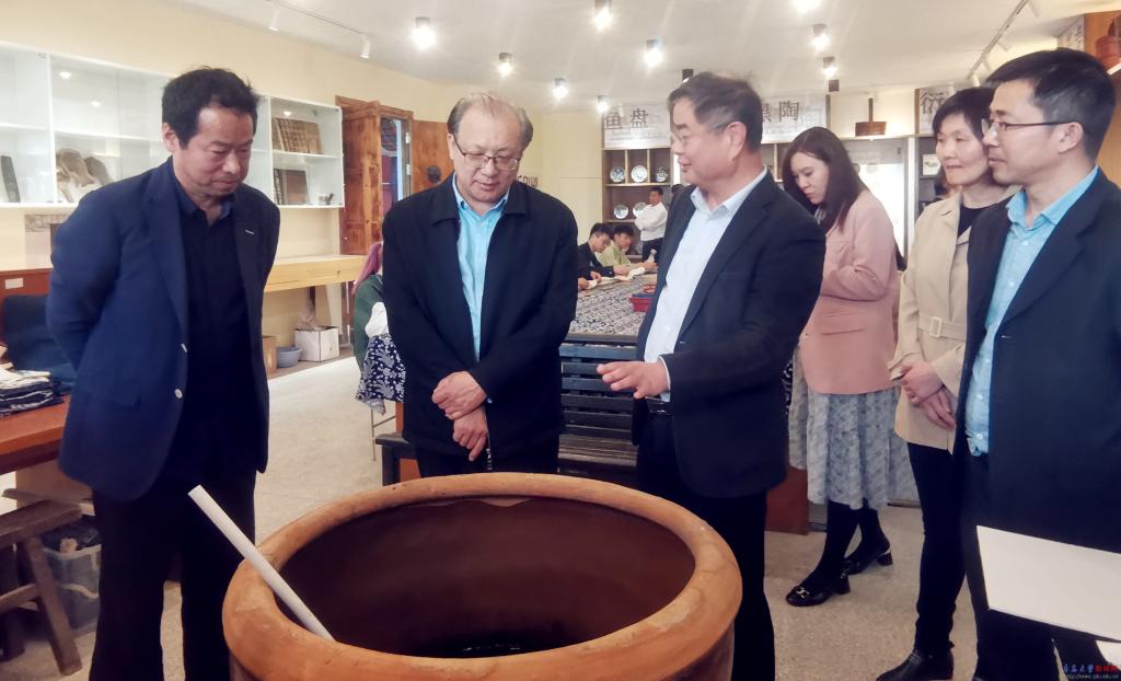考察过程中,图书馆馆长陆婕介绍了学校图书馆节举办的十大非遗在校园等活动情况;美术学院副院长、美育导师侍锦教授介绍了“非遗在高校”教学科研、工作开展和场馆建设等情况,并对青岛市文化和旅游局委托的青岛市非遗普查情况进行了展示讲解。考察组一行实地参观了鸭脖图书馆融阅读空间、民间工艺美学馆和城市记忆博物馆,走进“传统器物”、“手工技艺”、“印染织绣”、“非遗书馆”、“非遗项目互动体验”、“青岛市非遗普查汇报展”等多个展厅和空间进行现场指导,并与正在参加扎染体验和古琴汉服雅集活动的师生互动交流。