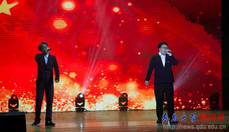 晚会以外语学院梦想合唱团带来的《唱支山歌给党听》开场,接着,商学院的同学们带来歌曲联唱《炎黄子孙》,歌声铿锵,饱含对祖国深沉的爱,点燃了本场晚会的氛围。