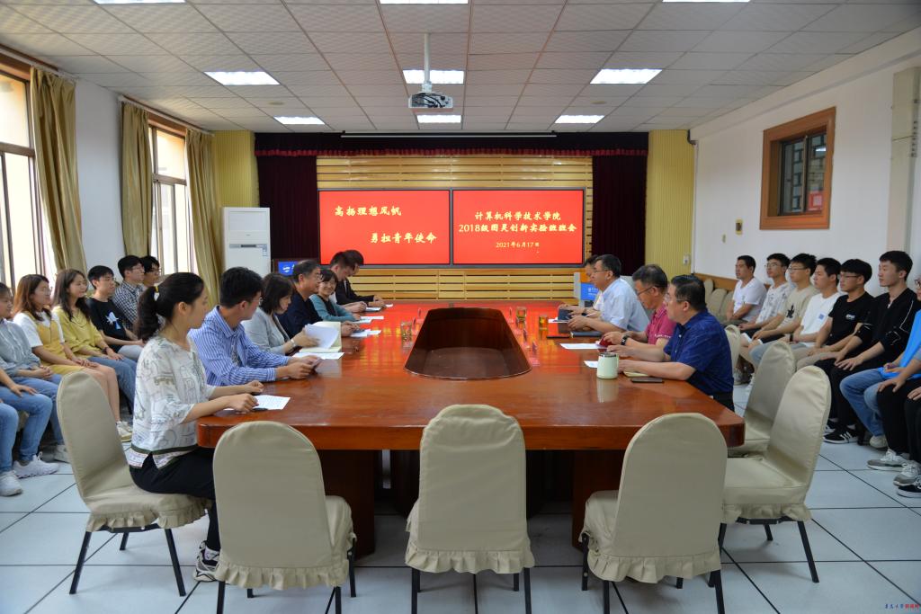 新闻网讯 6月17日下午,校长夏东伟在博知楼510会议室参加了计算机科学技术学院2018级图灵创新实验班主题班会,与同学们围绕“服务与奉献精神、合作与创新思维、理想与梦想追求”等话题进行了互动交流。