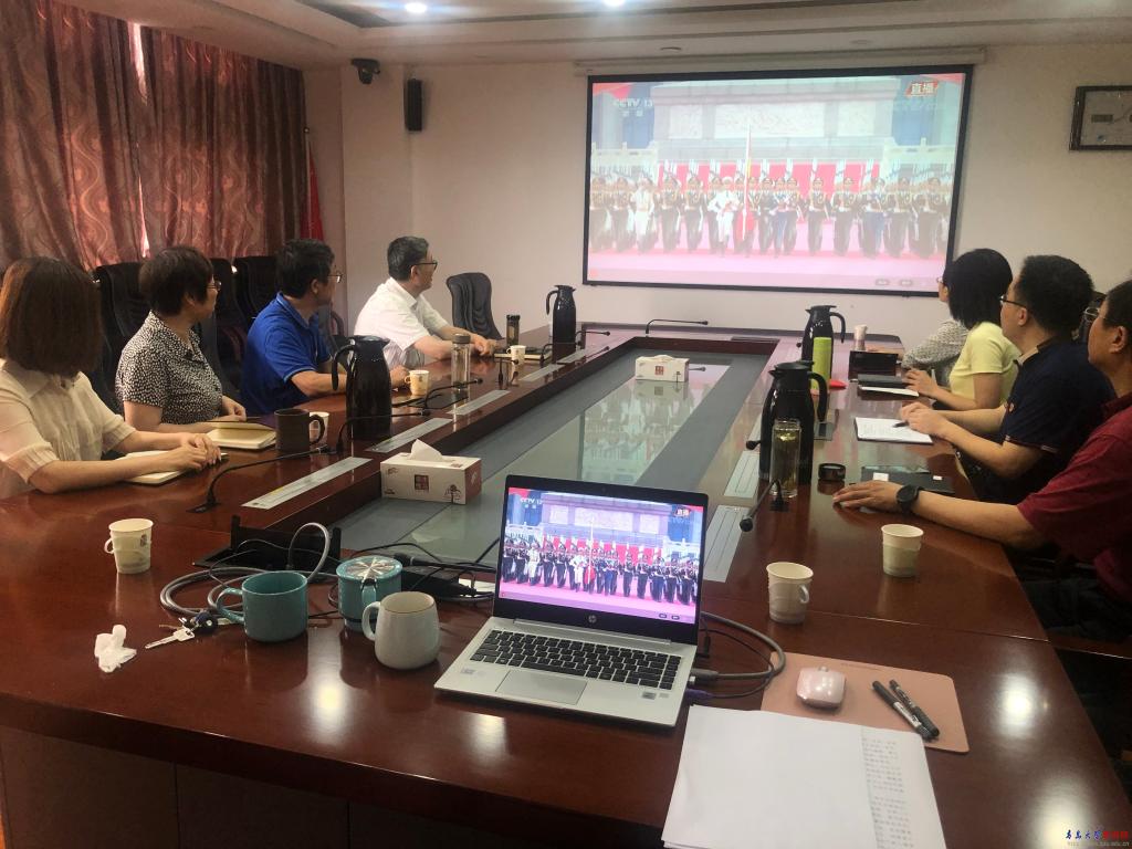 新闻网讯 7月1日上午8时,庆祝中国共产党成立100周年大会在北京天安门广场隆重举行,中共中央总书记、国家主席、中央军委主席习近平出席大会并发表重要讲话。学校各级党组织通过多种形式,在会议室、党建活动室、教室、实验室、宿舍、食堂等地,组织师生党员和群众通过电视、网络、广播等媒体集中收听收看大会现场直播盛况,深入学习领会习近平总书记重要讲话精神。