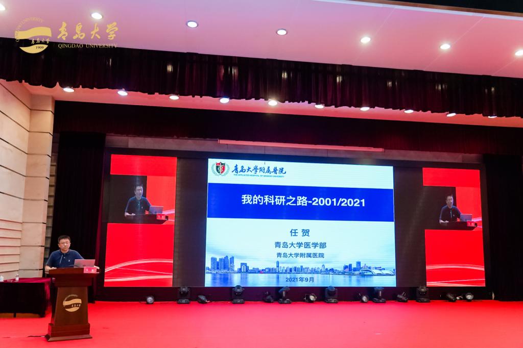 国家杰青、医学部副部长、博士研究生导师任贺教授以“我的科研之路(2001-2021)”为题,为研究生讲授了科研第一课,分享了个人科研精力,勉励同学们要面向科学问题,通过基础研究工作解决实际问题。