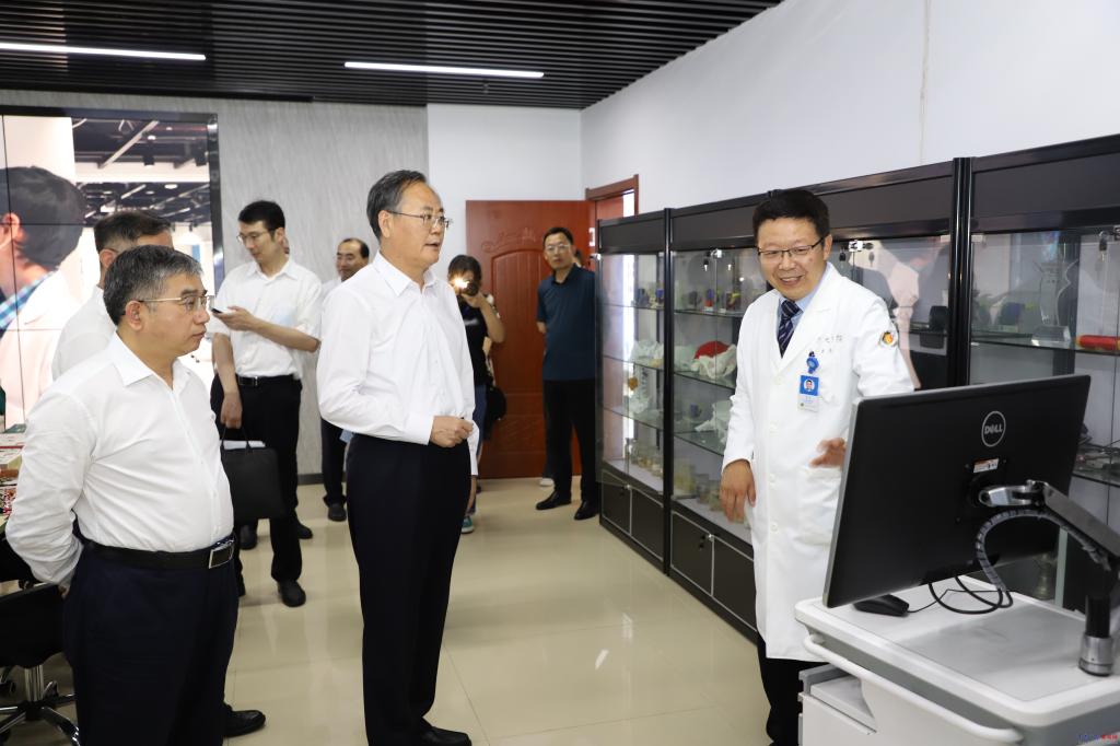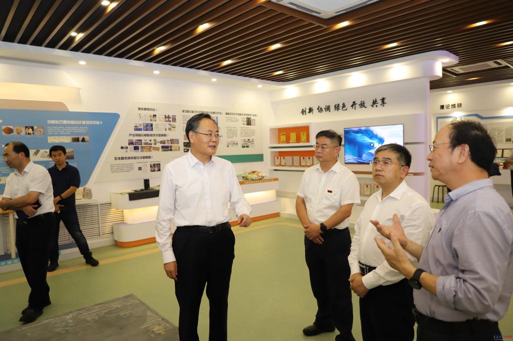 王久军先后来到生物多糖纤维成形与生态纺织国家重点实验室、数字医学与计算机辅助手术研究院,察看科技创新成果和实验设备,了解人才培养、学科建设、科技成果转换等情况。王久军对学校取得的成绩予以肯定,他指出,学校要紧紧抓住“十四五”规划发展机遇,进一步整合资源,构建高层次、高水平的研究体系,充分发挥高校的科技创新优势,促进政府、企业与高校的深度对接,促进产学研高效融合,为山东海洋强省建设和青岛打造国际海洋名城、推进蓝色经济区建设提供决策咨询和智力支持。