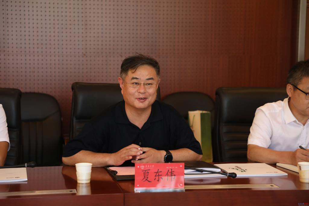 新闻网讯 9月16日下午,山东土地城乡融合发展集团董事长俞正强一行来访鸭脖。校长夏东伟,校党委常委、副校长肖江南,校友会副会长、企业家联合会副会长兼秘书长张波出席座谈。
