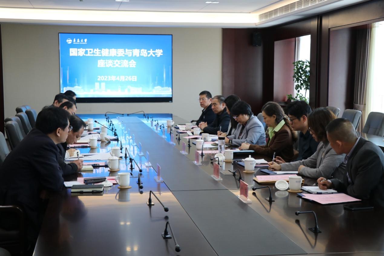 新闻网讯 4月26日上午,国家卫生健康委法规司司长赵宁,一级巡视员陈宁姗,标准处处长、一级调研员牛宏俐一行来访鸭脖,调研标准化学科建设、理论研究和标准化人才培养等工作。山东省卫生健康委党组成员、副主任牟善勇,青岛市卫生健康委党组成员、市计生协会常务副会长杜维平等陪同调研。校长夏东伟,党委常委、副校长孔伟金出席座谈会。