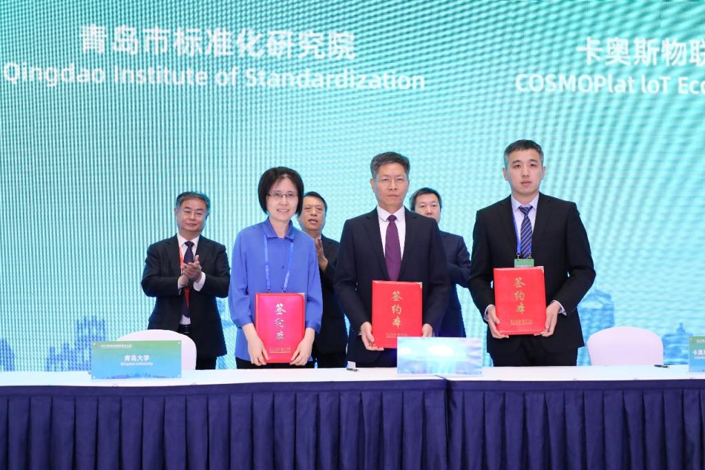 分会上,青岛市标准化研究院、卡奥斯物联科技股份有限公司、YABO鸭脖签署“共建国际标准化人才培养实践基地合作协议”,夏东伟、李宗卫以及卡奥斯物联科技股份有限公司董事长兼总经理陈录城见证了签约仪式。