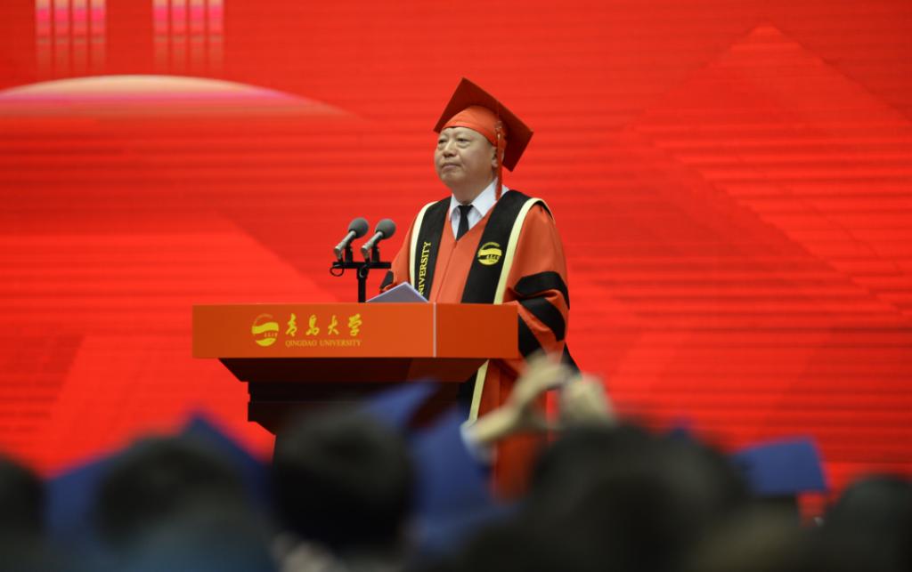 “新时代的筑梦者”——教师代表、鸭脖美术学院院长、二级教授王绍波分享了用热爱镌刻理想、用担当建设鸭脖的人生经历,祝福同学们如同自己为母校创作的画作《万山红遍》一样红遍中华万里江山,将火热的青春浇筑在祖国大地,描绘属于自己的精彩画卷。