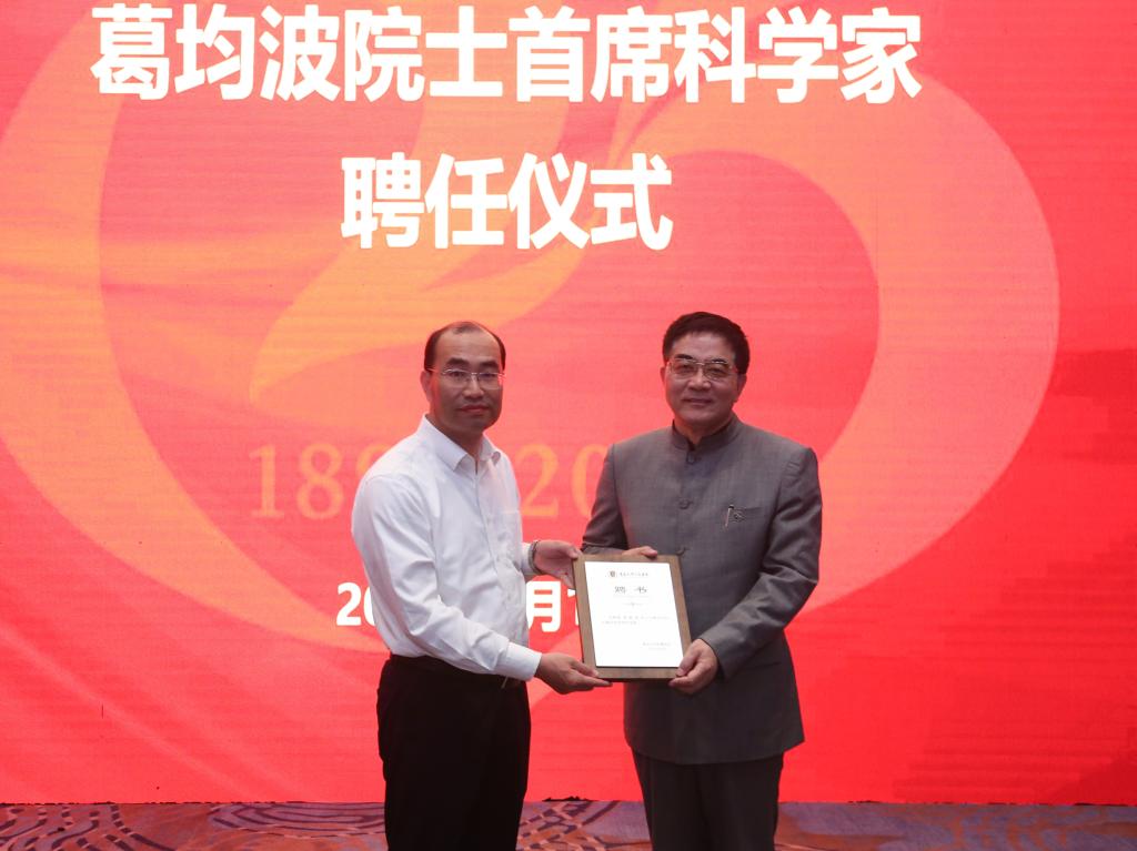 鸭脖附院聘任葛均波院士为医院首席科学家,孔伟金副校长向葛均波院士颁发聘书。