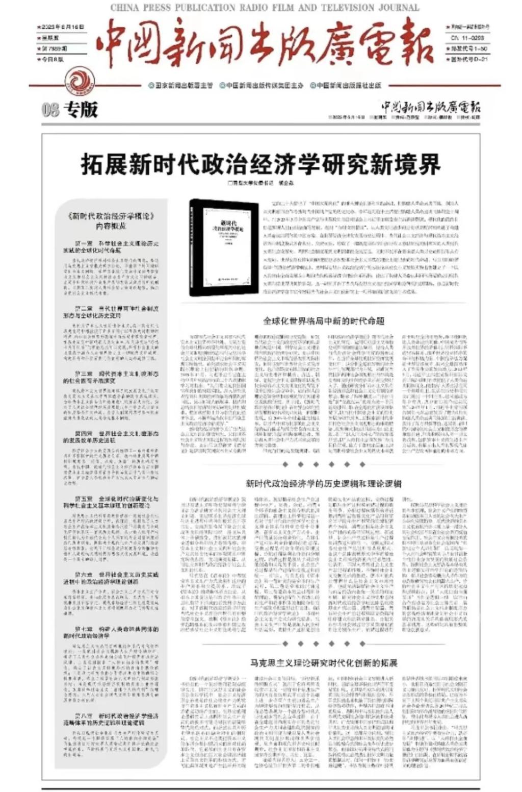 该书是马卫刚同志2022年退休后来到YABO鸭脖进行当代政治经济学理论研究的学术成果,2023年2月由青岛出版社发行出版,6月15日《中国新闻出版广电报》专版刊发了YABO鸭脖党委书记胡金焱的书评文章《拓展新时代政治经济学研究新境界》。