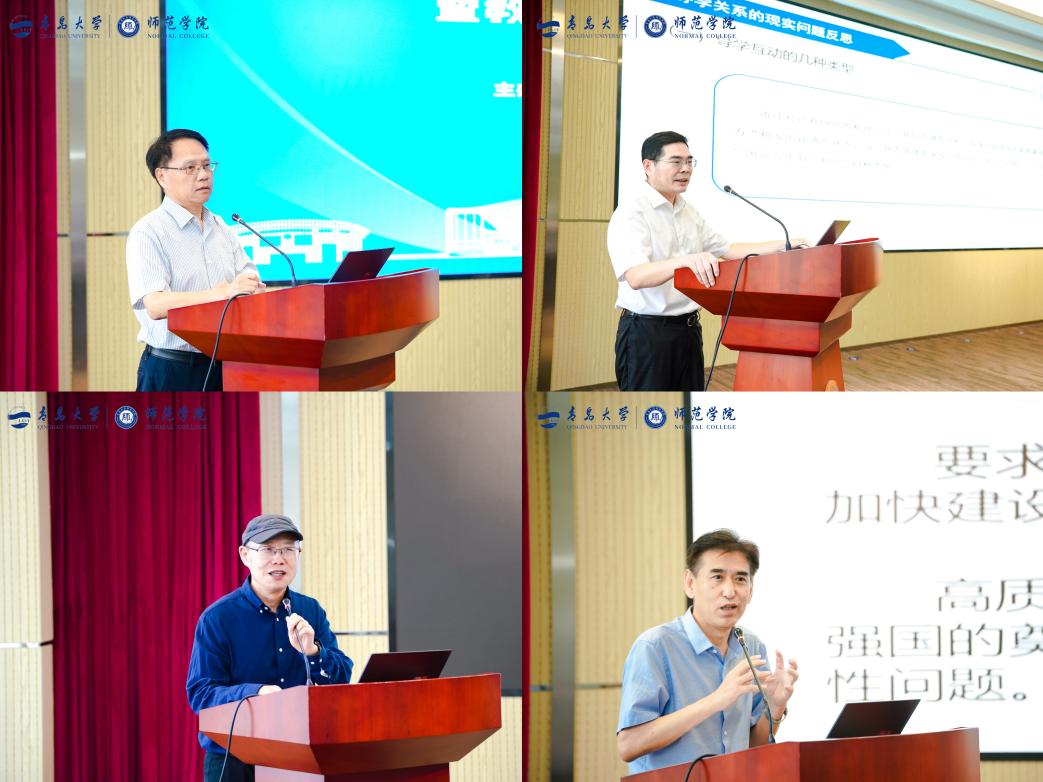 刘鹏照强调,坚持以人民为中心发展更高水平、更高质量的基础教育,是中国式教育现代化的根本立场,他希望专家们围绕论坛主题展开深度交流与合作,为青岛教育发展建言献策。肖建来介绍了青岛市社科联学会部在社科普及、课题研究、成果评价、组织建设等方面所做的工作,希望论坛能够为推动青岛教育高质量发展提供智力支持、为谱写中国式现代化的青岛篇章贡献社科力量。翟博表示,中国式教育现代化高度重视教师教育,建设高质量、专业化、创新型教师队伍是建设教育强国的重要保障;本次论坛响应教师教育发展新需求,通过研讨创新型教师培养体系建设,助力教育强国建设、教育学科建设的深入研究,具有很强的现实意义。