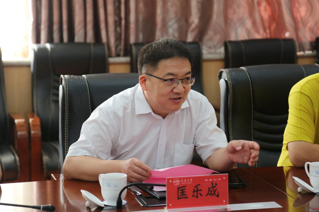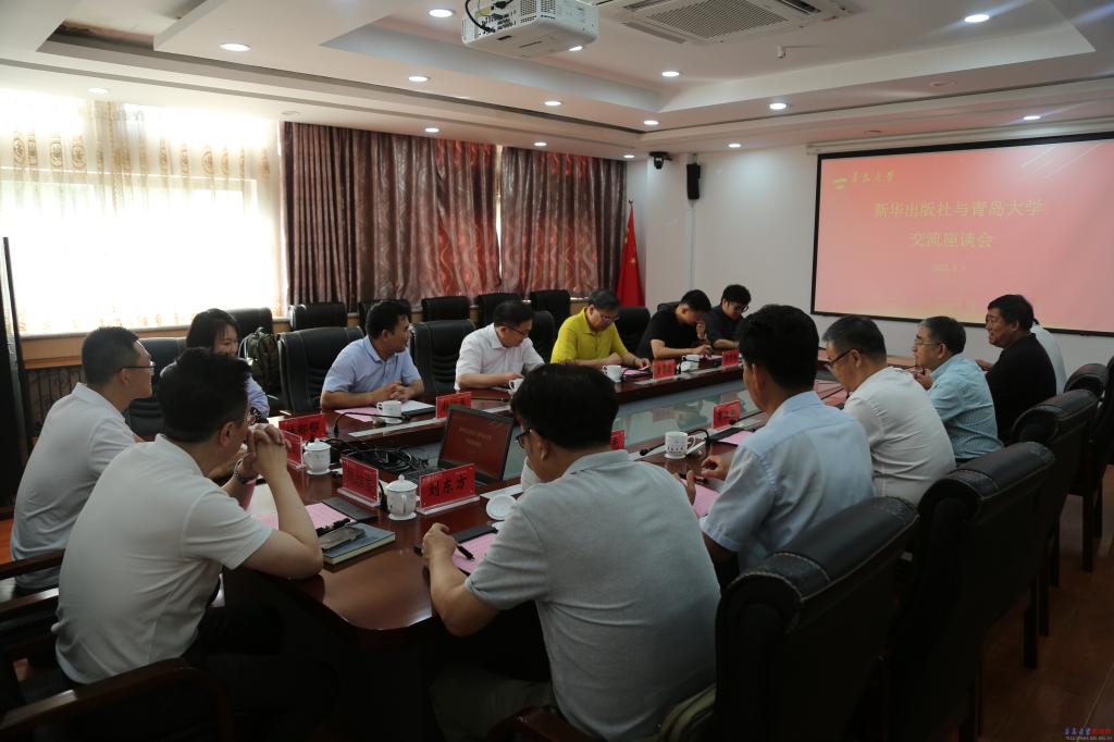 新华社青岛支社,校党委宣传部、人文社科处、图书馆、文学与新闻传播学院等单位负责人参加座谈。