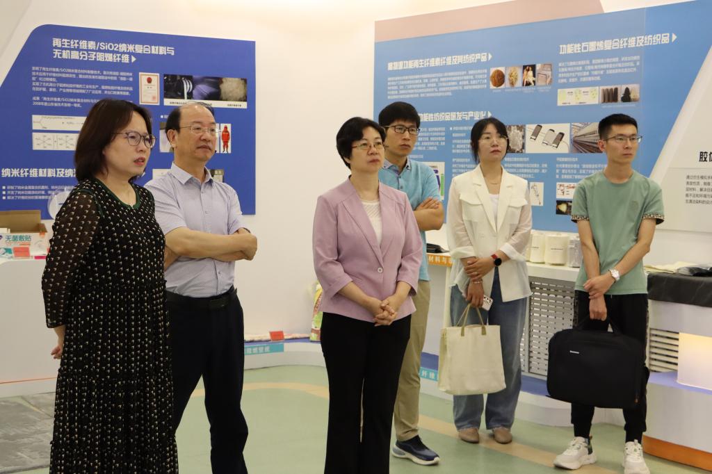校党委组织部、生物多糖纤维成形与生态纺织国家重点实验室相关负责人陪同交流。