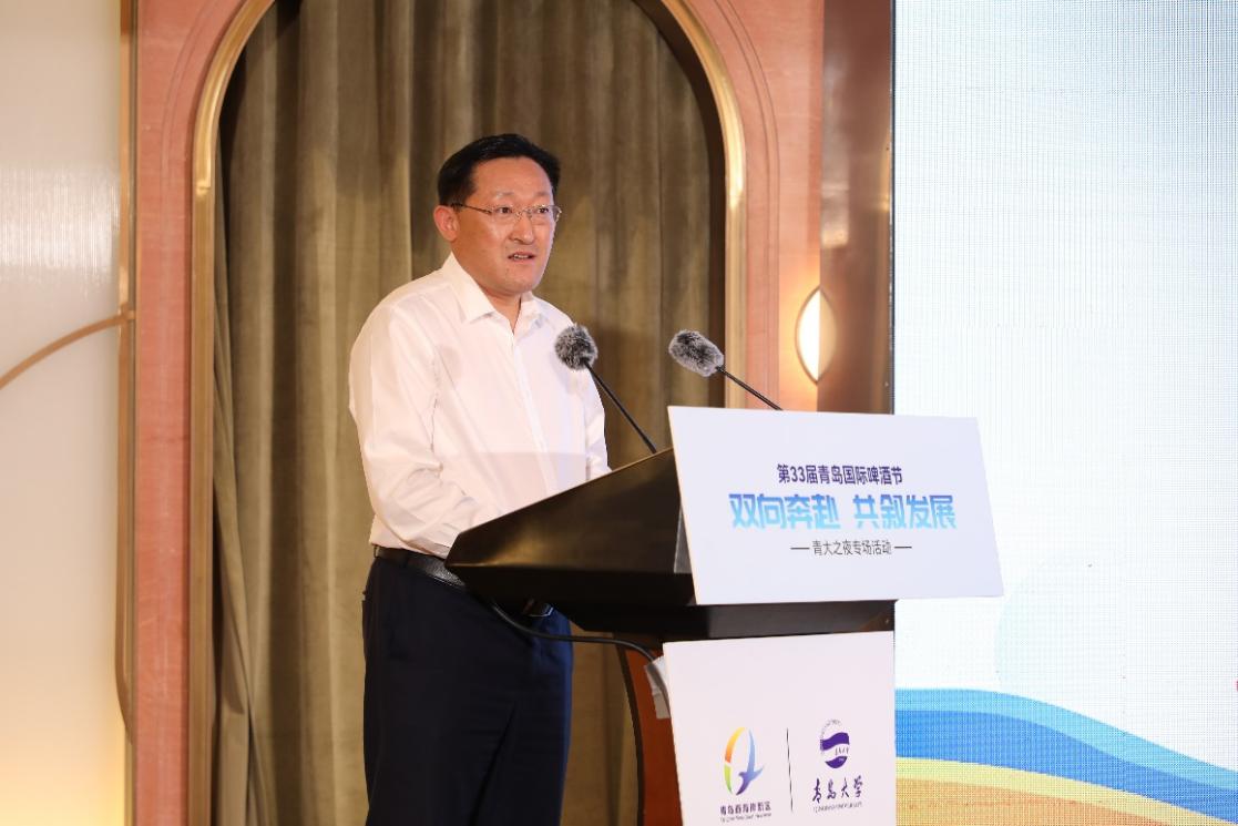 新闻网讯 7月29日晚,第33届青岛国际啤酒节“双向奔赴 共叙发展”鸭脖之夜专场活动在青岛西海岸新区金沙滩啤酒城成功举办,本次活动旨在推动人才成长链与经济发展产业链有机衔接,实现城市与高校双向奔赴、共叙发展。校党委书记胡金焱,校长夏东伟,青岛市委常委、西海岸新区工委书记、黄岛区委书记孙永红,西海岸新区工委副书记、区长王清源出席活动。