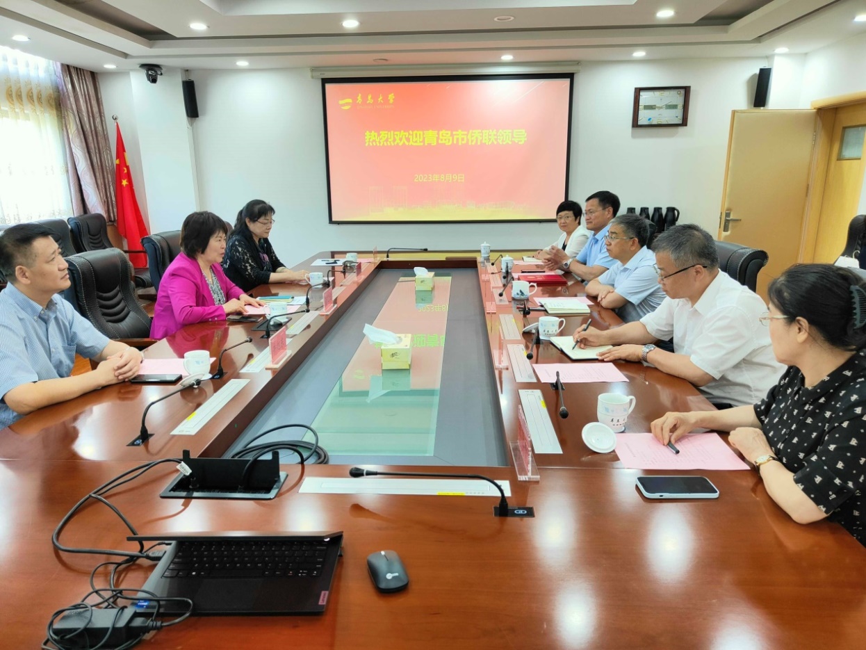 新闻网讯 8月9日上午,青岛市侨联党组书记、一级巡视员管艾宏一行来访鸭脖,校党委书记胡金焱在办公楼306会议室会见并座谈。校党委副书记肖江南,市侨联二级巡视员梁启云,市侨联党组成员、副主席牛旭东,统战部常务副部长王春光,侨界代表药学院院长张汉霆,医疗集团副院长、市侨联兼职副主席张晓春等参加座谈。
