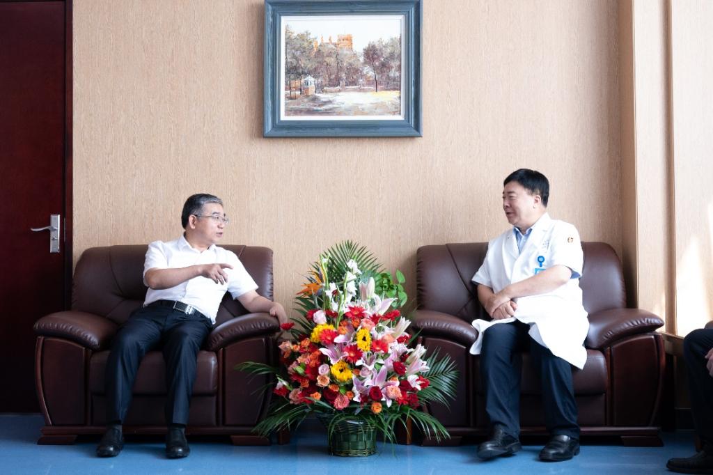 看望慰问中,胡金焱与院士就医工交叉对医学领域的影响以及如何加快高层次复合型医学人才培养进行了深入的探讨,同时恳请院士继续关注和支持学校的发展建设,并表示会进一步做好院士服务工作。张英泽院士感谢学校给与的关怀和重视,并介绍了近期自己在科研方面的进展情况,表示将一如既往,竭尽所能为学校的发展做出更大的贡献。