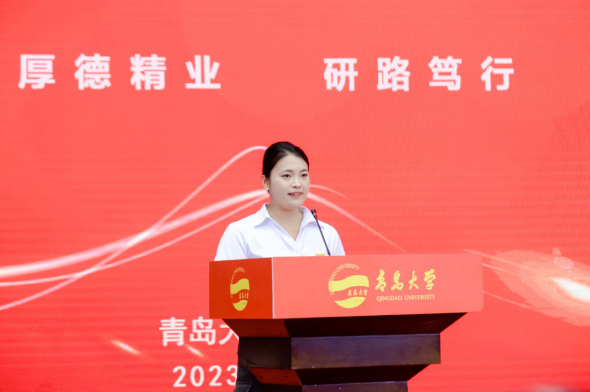 老生代表、2020级自动化学院博士研究生孙银霜分享了研究生阶段学习和生活的感悟和体会,希望学弟学妹们勇担时代重任,在攀登科学高峰的征程中绽放青春。