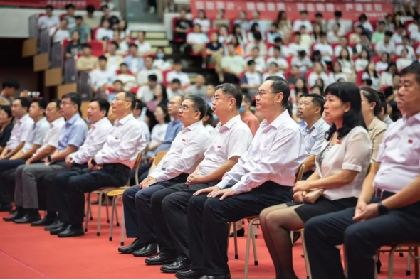 校领导胡金焱、夏东伟、李军、范玉斌、刘彩云、吴世珍出席典礼。研究生督学代表、相关职能部门和院部负责人、师生代表和2023级研究生新生参加典礼。校党委常委、副校长陈涛主持开学典礼。