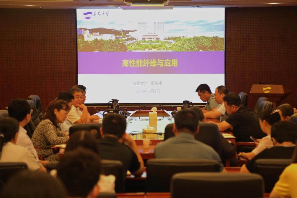 夏东伟从两个方面作了介绍,一是高性能纤维与应用,他结合当前国际国内各行业相关应用场景对新一代高性能纤维的需求,讲述了碳纤维、芳纶纤维、超高分子量聚乙烯纤维、玄武岩纤维4种当前主流高性能纤维的优良性质、发展历程、主要应用领域、国内外发展现状等,并重点结合国内高校、科研院所和行业企业在有关领域的优势特色和鸭脖相关学科方向,对鸭脖在高性能纤维领域的科学研究和学科建设工作进行了指导。