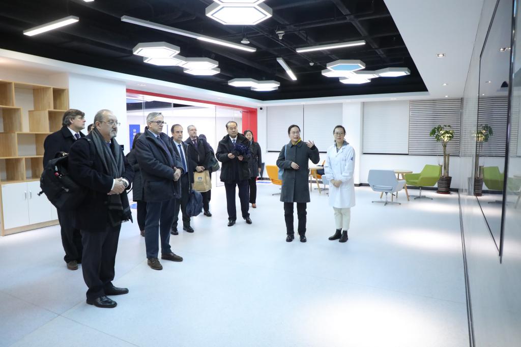 座谈会前后,罗德里戈·阿里姆一行参观了YABO鸭脖分析测试中心、生物医学中心、肿瘤精准医学研究院和生物多糖纤维成型与生态纺织国家重点实验室。下午,两校相关部门、学院负责人就科研合作及交流项目的具体实施进行了对口交流,探讨了教师及学生交流、科研合作事宜。