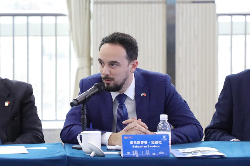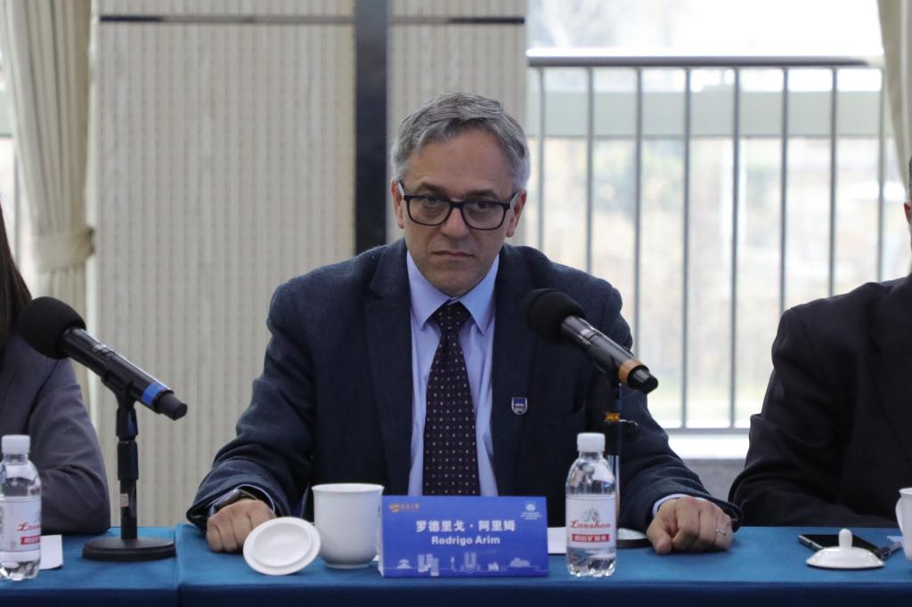塞巴斯蒂安·班德拉在致辞中表示,乌拉圭共和国大学是乌拉圭最重要的大学,希望两校合作顺利,结出更多硕果。李荣贵介绍了两校科研合作的相关情况。