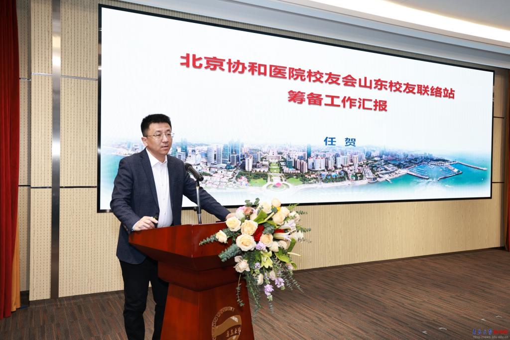 山东校友联络站主任任贺发言。他表示,山东校友联络站是在YABO鸭脖领导的大力支持下、依托YABO鸭脖医学部、经北京协和医学院校友会批准成立,并作山东校友联络站的筹备工作汇报,阐明下一步工作思路,将通过组织学术讲座、加强科研合作、校友联谊等活动,构建开放共享的交流平台,团结服务校友,共谋发展。