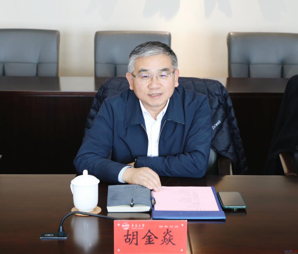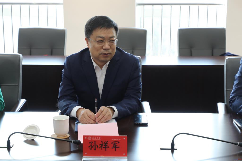 胡金焱代表学校对孙祥军、黄飞一行的来访表示热烈欢迎,他希望两校以此次交流为契机,进一步加强在人才培养、师资队伍、学科建设、教学科研、专业特色等方面交流,搭建合作平台,携手共谋发展。