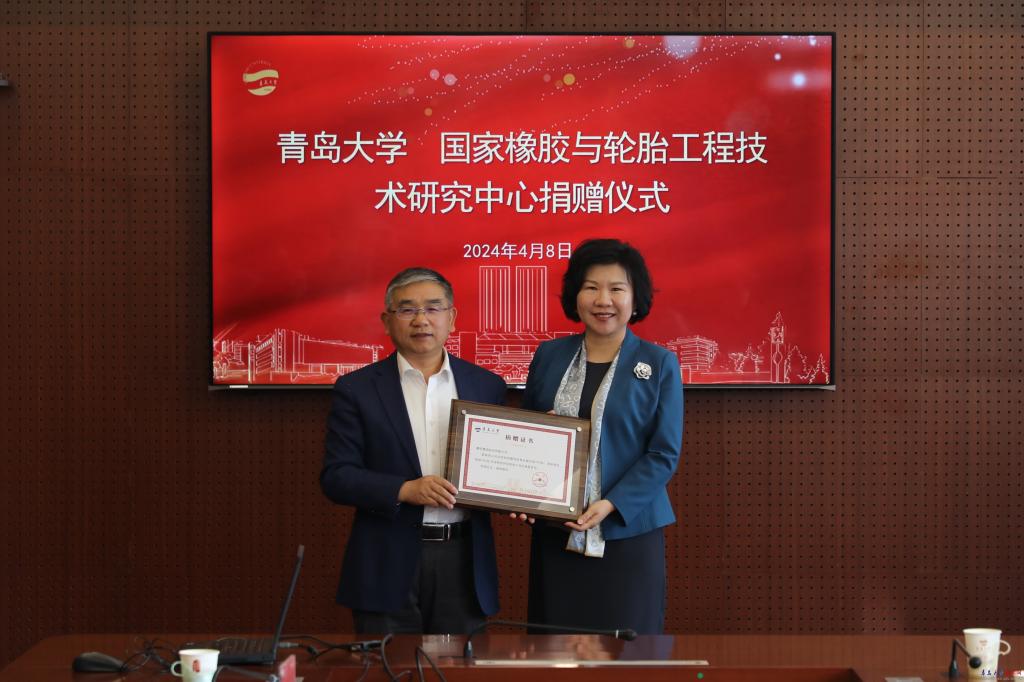 新闻网讯 4月8日下午,国家橡胶与轮胎工程技术研究中心(以下简称“国橡中心”)捐赠仪式在鸭脖办公楼201会议室举行。国橡中心副主任、赛轮集团董事长、92级校友刘燕华,国橡中心副主任、维可迈董事长、90级校友王金健,国橡中心项目发展委员会主任、赛轮集团副总裁、财务总监耿明,校党委书记胡金焱出席仪式。党委常委、副校长陈涛主持仪式。