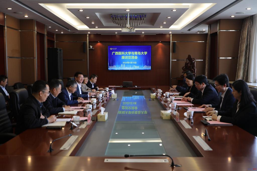 新闻网讯 4月16日上午,广西医科大学党委书记黄照权一行来访鸭脖。校党委书记胡金焱在办公楼201会议室会见并座谈。