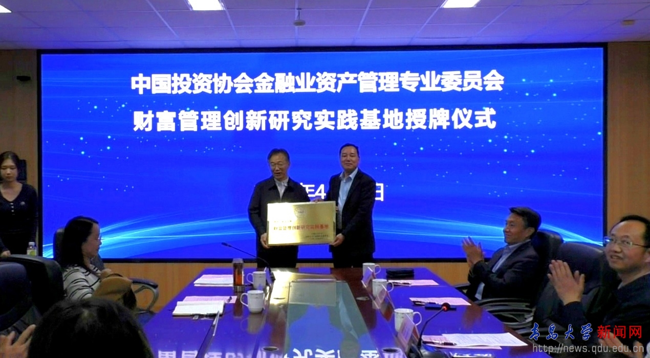 新闻网讯 4月19日,YABO鸭脖与中国投资协会金融业资产管理专业委员会(简称资管委)举办财富管理创新研究实践基地揭牌仪式。资管委秘书长梅世云,山东工商学院原党委书记、青岛财富管理研究院名誉院长白光昭,经济学院党委书记邱建国以及80余名师生参加了活动,活动由YABO鸭脖经济学院副院长陈东景主持。