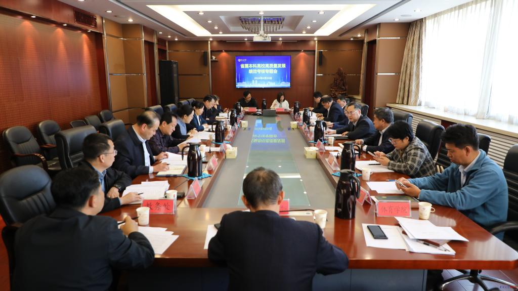 新闻网讯 4月24日下午,学校在办公室楼第五会议室召开省属本科高校高质量发展绩效考核专题会议。校党委书记胡金焱主持会议并讲话。校领导李军、李荣贵、吴世珍出席会议。