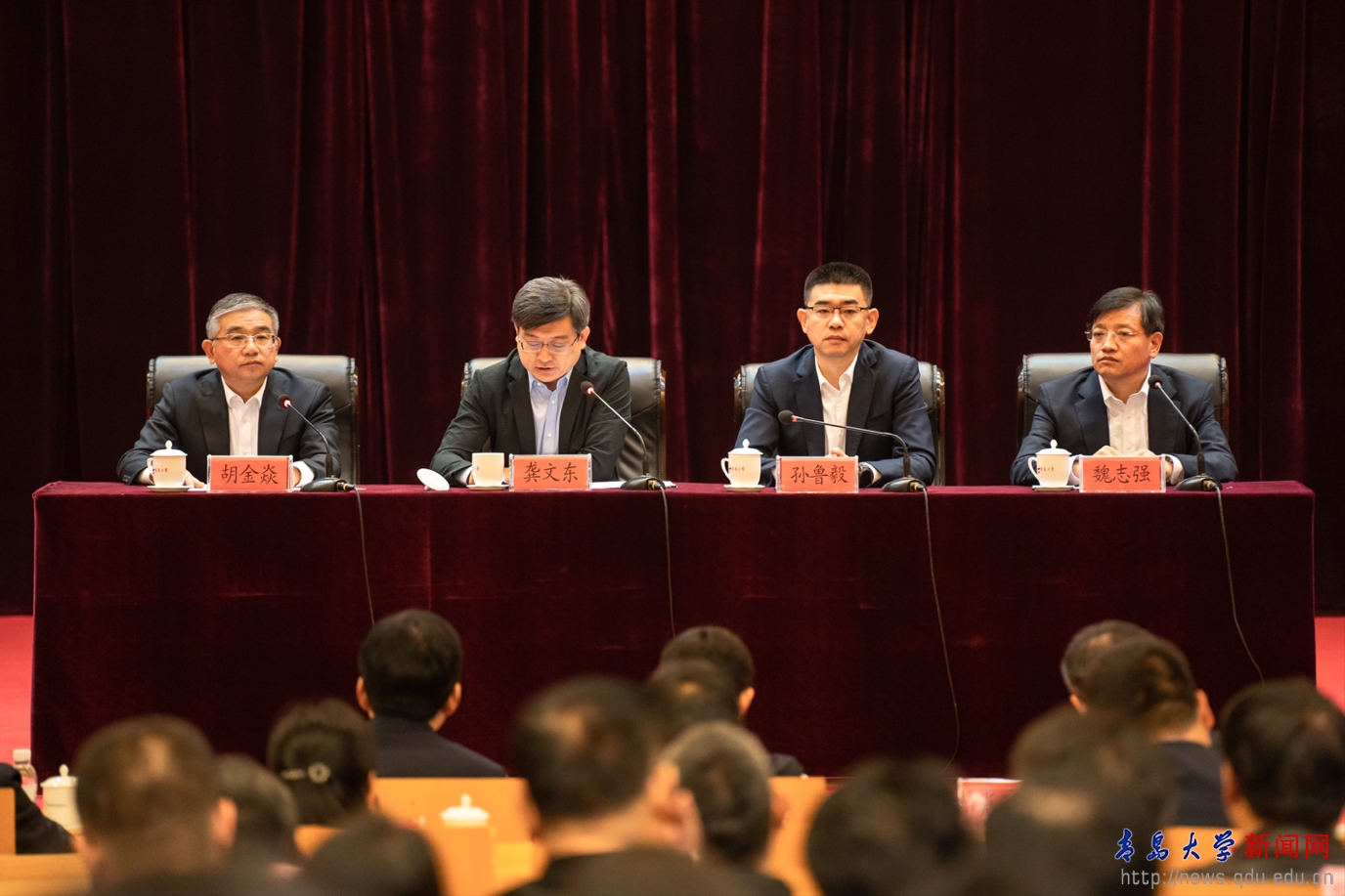 胡金焱在主持讲话中表示,坚决拥护省委决定,全力支持魏志强同志开展工作。胡金焱指出,当前正是学校抢抓机遇,推动实现高质量发展,加快建设高水平综合性研究型大学的关键时期,学校领导班子必须锚定目标、担当作为,加快推进学校事业实现新的跨越发展。一是讲政治守忠诚。坚持以习近平新时代中国特色社会主义思想为指导,深刻领悟“两个确立”的决定性意义,增强“四个意识”、坚定“四个自信”、做到“两个维护”,牢牢把握社会主义办学方向,落实立德树人根本任务,使学校成为坚持党的领导的坚强阵地,成为培养社会主义建设者和接班人的坚强阵地。二是重团结谋发展。不断加强领导班子建设,切实履行好党委“把方向、管大局、作决策、保落实”的职责,科学谋定全局,把事业发展、师生期盼作为工作的最大动力,带头维护班子团结,带头讲奉献、聚合力,带头走在前、开新局,推动学校高质量发展再上新台阶。三是勇担当善作为。在省委、省政府坚强领导下,牢记使命任务,以创新引领突破,以突破推动转型,加快实现转型发展、创新发展、突破发展,不断开创高水平综合性研究型大学建设的新局面,高质量答好“教育强国,鸭脖何为”的时代答卷。四是讲纪律做表率。牢记党的根本宗旨,坚持把纪律和规矩挺在前面,牢固树立正确的权力观、地位观和利益观,堂堂正正做人,清清白白尽职,踏踏实实做事,让组织放心、让师生满意。