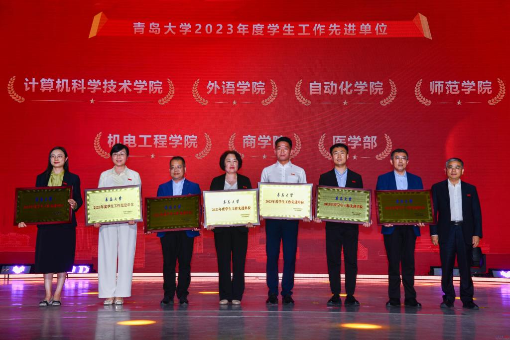 表彰会以“青春闪耀 榜样如光”为主题,分为“学生工作表彰”“共青团工作表彰”“优秀学生及集体表彰”“读书行动”“家校社协同育人”五个篇章。会上对“学生工作先进单位”“五四红旗团委”“十佳优秀学生”“十佳优秀团员标兵”等21个奖项进行表彰,对6个校级“辅导员工作室”进行授牌。