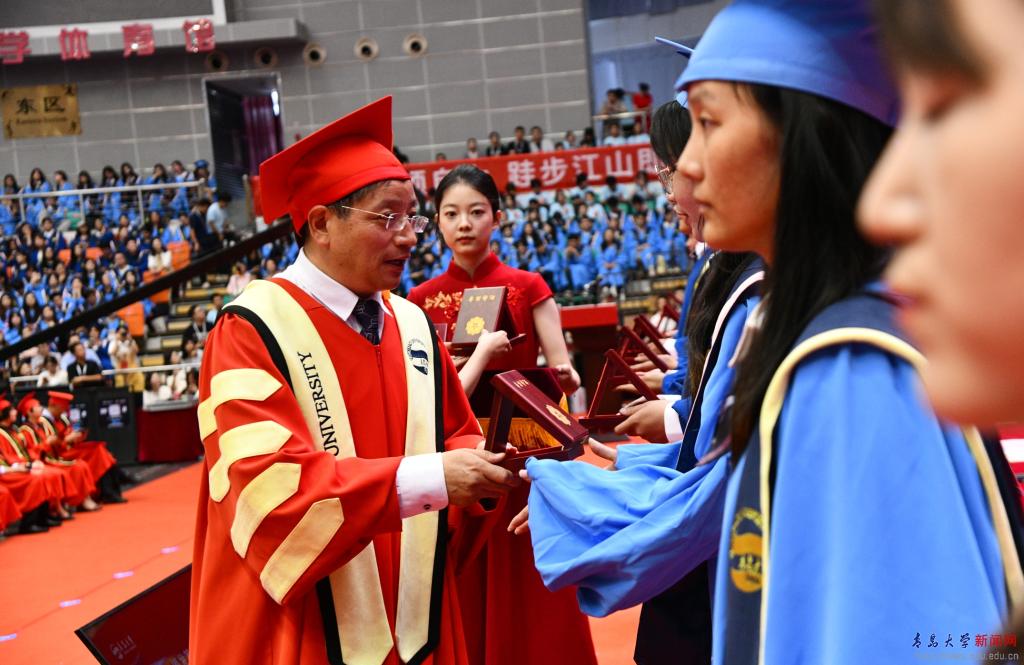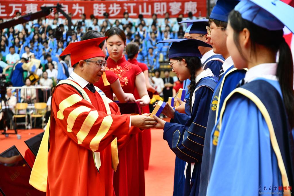 毕业典礼上,胡金焱为2024届省级优秀毕业生代表颁奖。魏志强为2024年基层就业毕业生代表颁发荣誉纪念章。