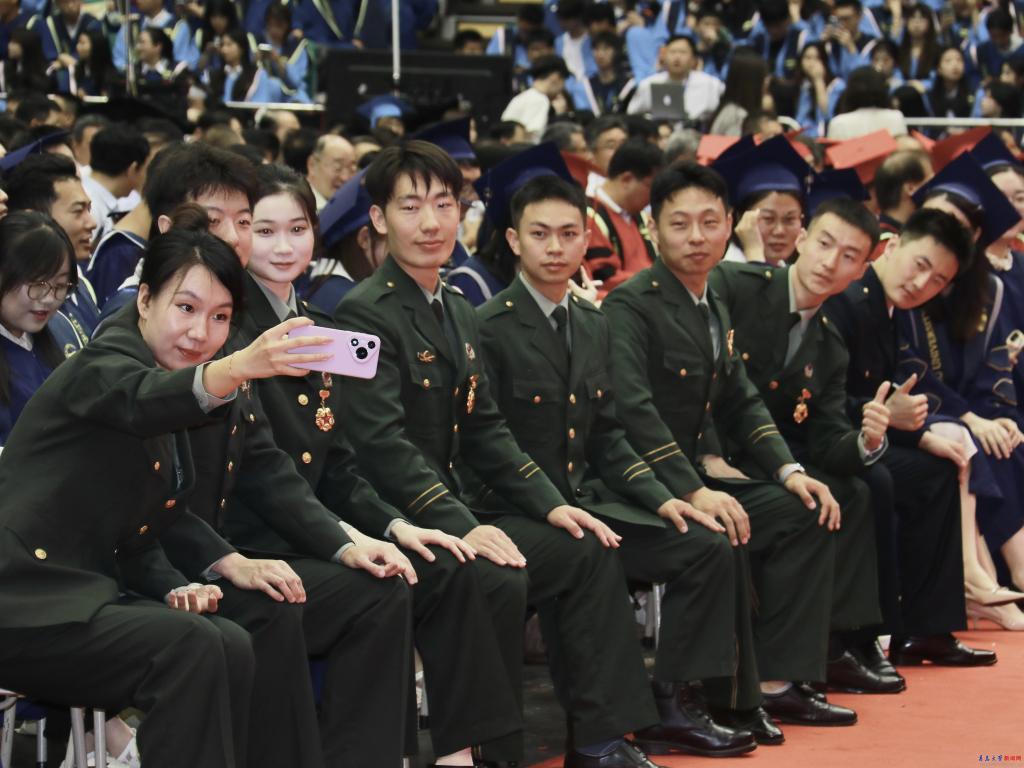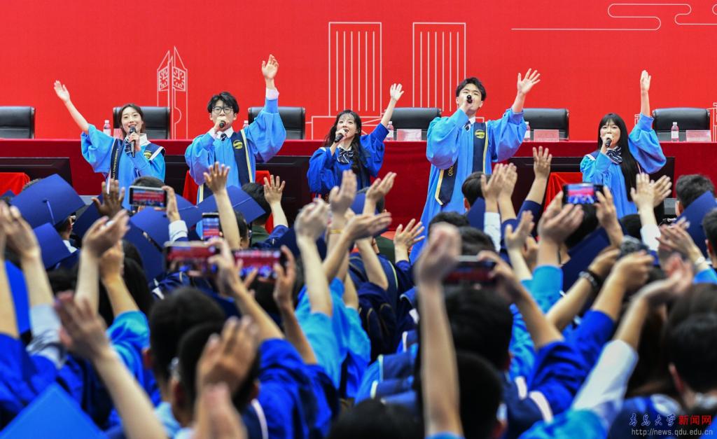 典礼前的“青春飞扬”快闪,唱响了对母校的浓浓眷恋与对师友的依依不舍,唱出了鸭脖人无悔的奋斗青春,悠远了鸭脖人“明德博学守正出奇”的精神。祝愿2024届全体毕业生启航山海鸭脖,扬鞭万里征程!