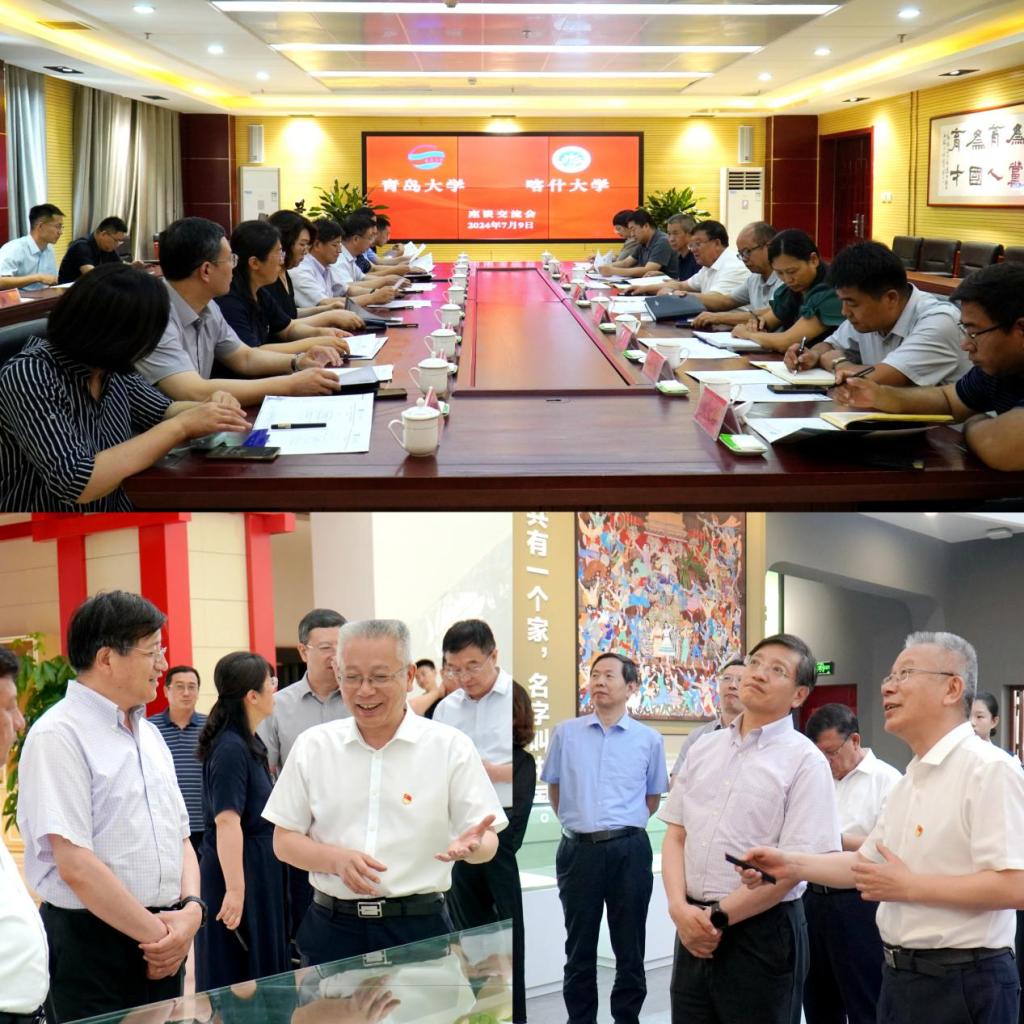 喀什大学党委书记丁邦文陪同参观了思想政治教育基地、黄胄艺术研究院、自然博物馆。喀什大学党委副书记、校长买买提明•木沙陪同调研并座谈。双方介绍了学校的发展现状并展开了深入交流,表示希望进一步发挥各自优势,在理工科、文化旅游等学科专业建设、人才培养、师资队伍建设、资源信息共享等方面,找准合作链接点,实现优势互补,互利共赢。