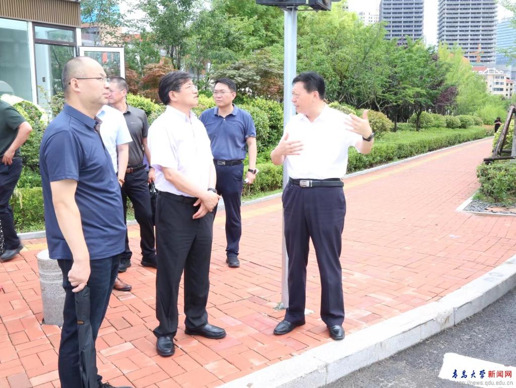 魏志强一行先后来到金家岭校区西院人防地下通道、市政混凝土挡阻墙、剑湖、大学生活动中心和东院学生公寓改造项目现场开展汛期安全检查,指导防汛应急处置工作。