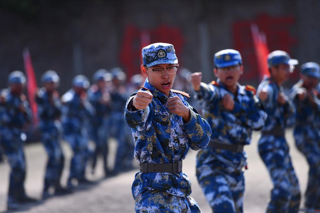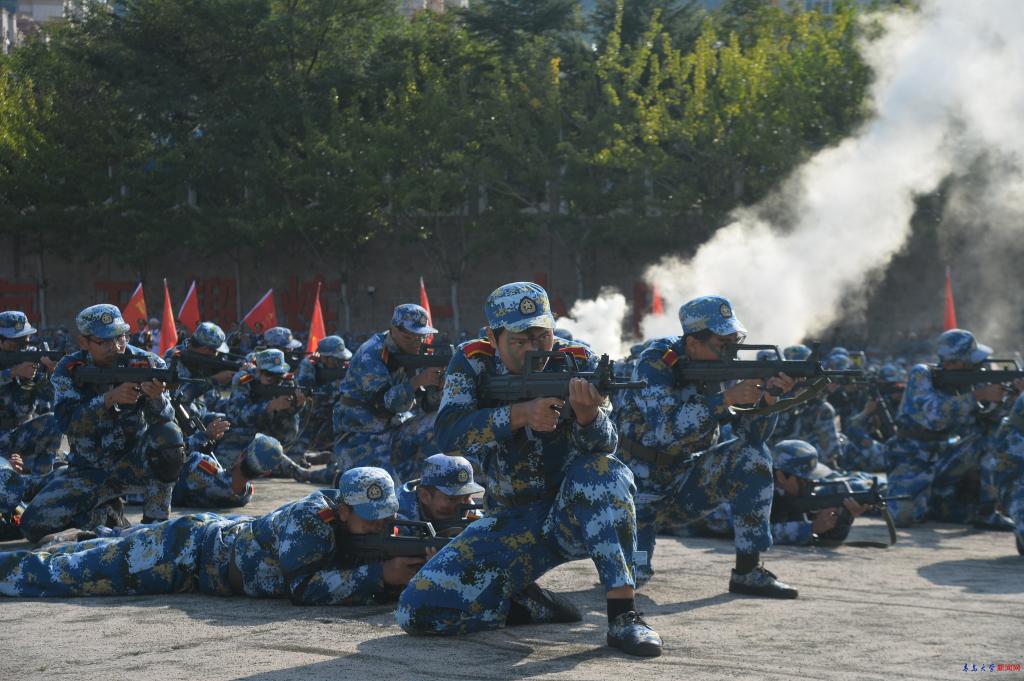 2024级本科生身着迷彩、英姿飒爽,迈着铿锵有力的步伐、喊着掷地有声的口号进行了分列式表演。苍劲有力的擒敌格斗,干净利落的匕首操,气势如虹的模拟攻防演练让现场兵味儿十足、军味儿十足、战味儿十足。
