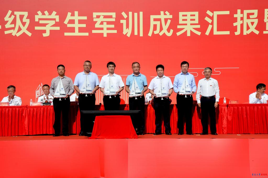 典礼中,校党委书记胡金焱向承训部队、青岛警备区赠送锦旗和纪念品,对部队为学校军训工作提供的支持和教官们的辛苦付出表示感谢。