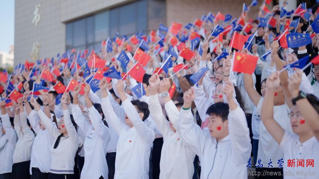 在鲜艳的国旗下,青年学生代表通过主题朗诵以青春的名义,向祖国献礼。全体学生高举右拳,立下了“强国有我 挺膺担当”的青春誓言。全体师生挥舞着手中的国旗和校旗,合唱《我爱你中国》,为祖国献上最深情的告白,现场气氛热烈而温馨。