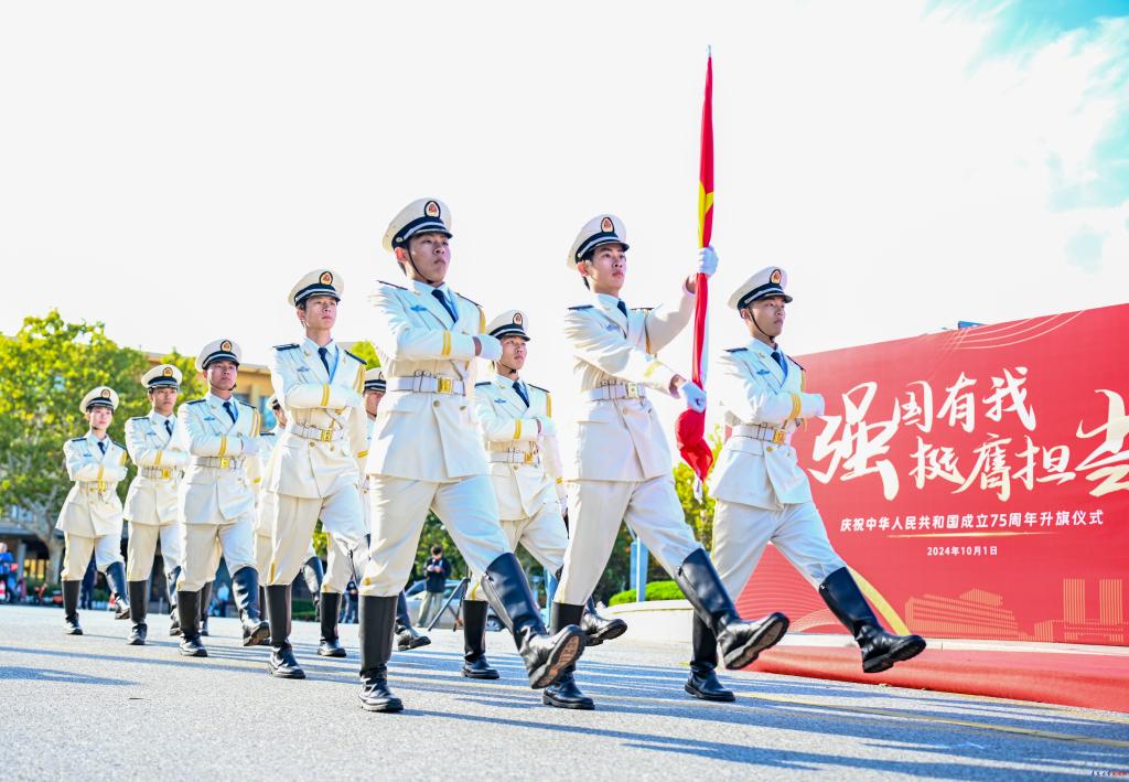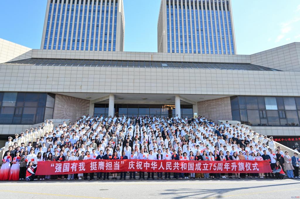 新闻网讯 10月1日上午,鸭脖在浮山校区和金家岭校区同时举行“强国有我 挺膺担当”庆祝中华人民共和国成立75周年升国旗仪式。校党委常委、副校长陈涛出席升旗仪式并讲话。校团委书记李鹏主持仪式。