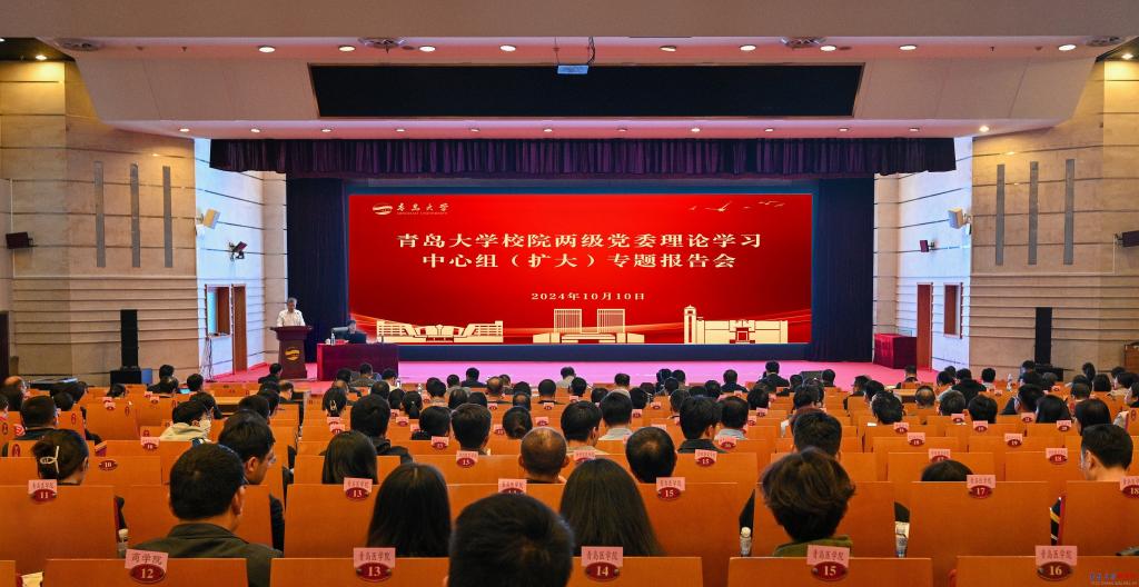 新闻网讯 10月10日,校党委以“深入学习贯彻习近平文化思想,巩固马克思主义在意识形态领域的指导地位”为主题,在国际学术交流中心博学厅举办校院两级党委理论学习中心组(扩大)专题报告会。校领导胡金焱、魏志强、陈涛、李荣贵、何燕、徐大连、李建波、牛海涛、吴世珍参加学习,校党委副书记肖江南主持报告会。