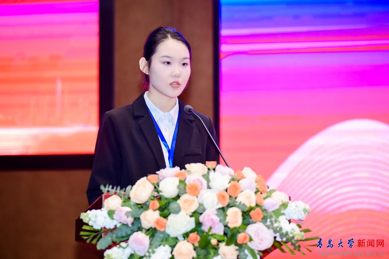 青岛酒店管理职业技术学院学生、参赛选手胡丽迎作为参赛学生代表发言。