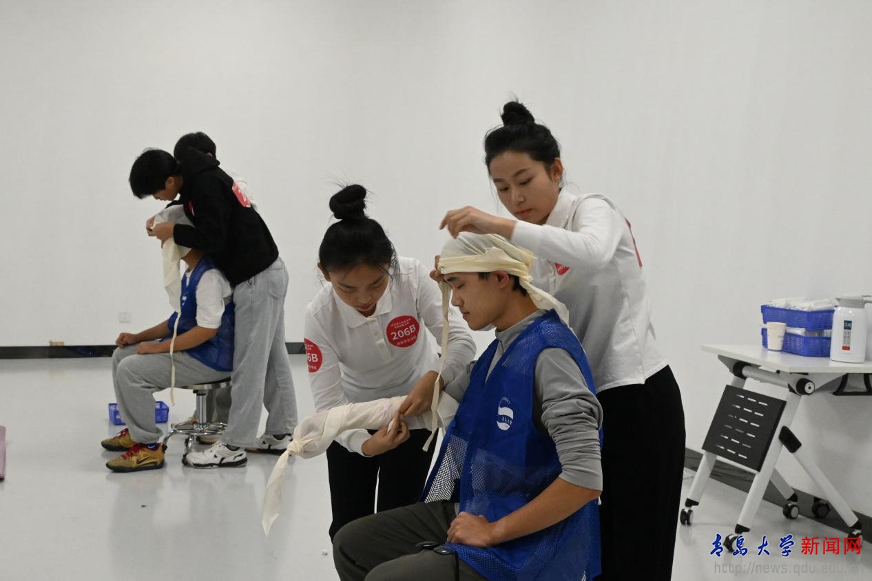 11月15日,在青岛模拟医学中心进行了实践操作环节的考核比赛。比赛分为初赛和决赛两个阶段。其中,初赛重点考核心肺复苏、气道异物梗阻、创伤急救、常见急症、意外伤害等内容,决赛考核呼吸道异物梗阻的急救、创伤急救等方面;大赛设置中小学教师组、高校学生甲组(非医学大类专业学生)、高校学生乙组(医学大类专业学生)3 个组别。