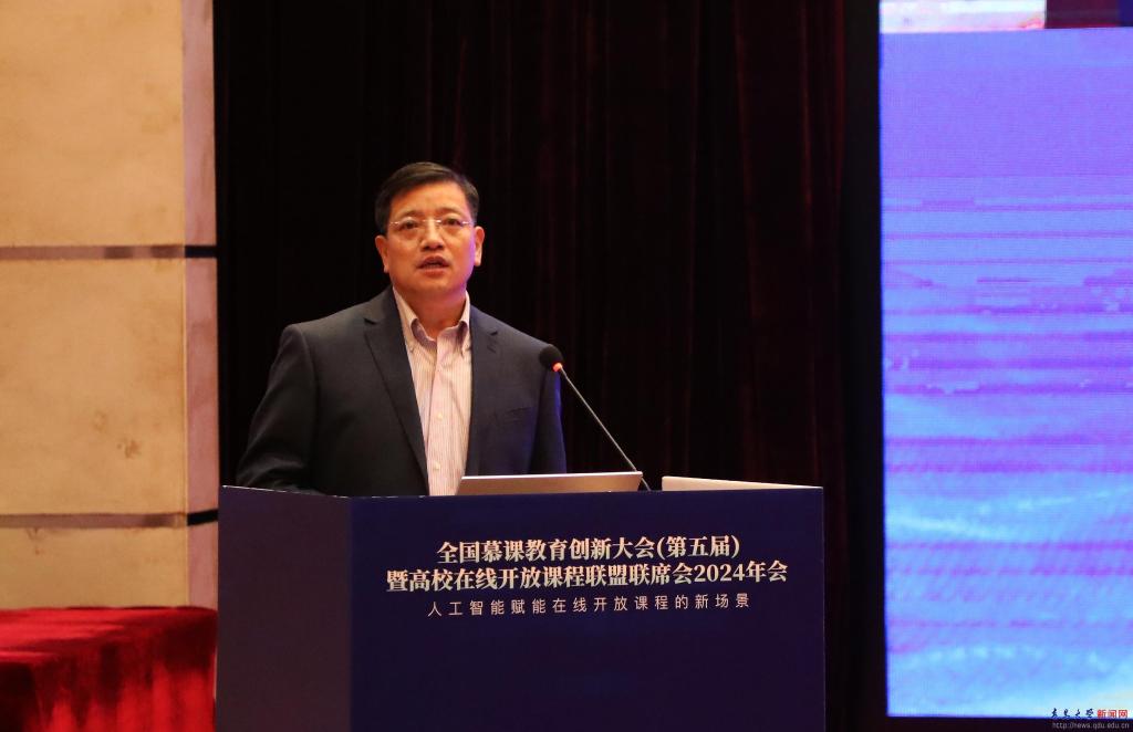 新闻网讯 12月22日,全国慕课教育创新大会(第五届)暨高校在线开放课程联盟联席会2024年会在鸭脖举办。大会以“人工智能赋能在线开放课程的新场景”为主题,教育部高等教育司课程教材与实验室处刘永强处长、山东省教育厅高教处曾宪文处长出席会议。全国28个慕课联盟成员以及高校、企业的约600名代表参加会议。校长魏志强出席会议并致辞。