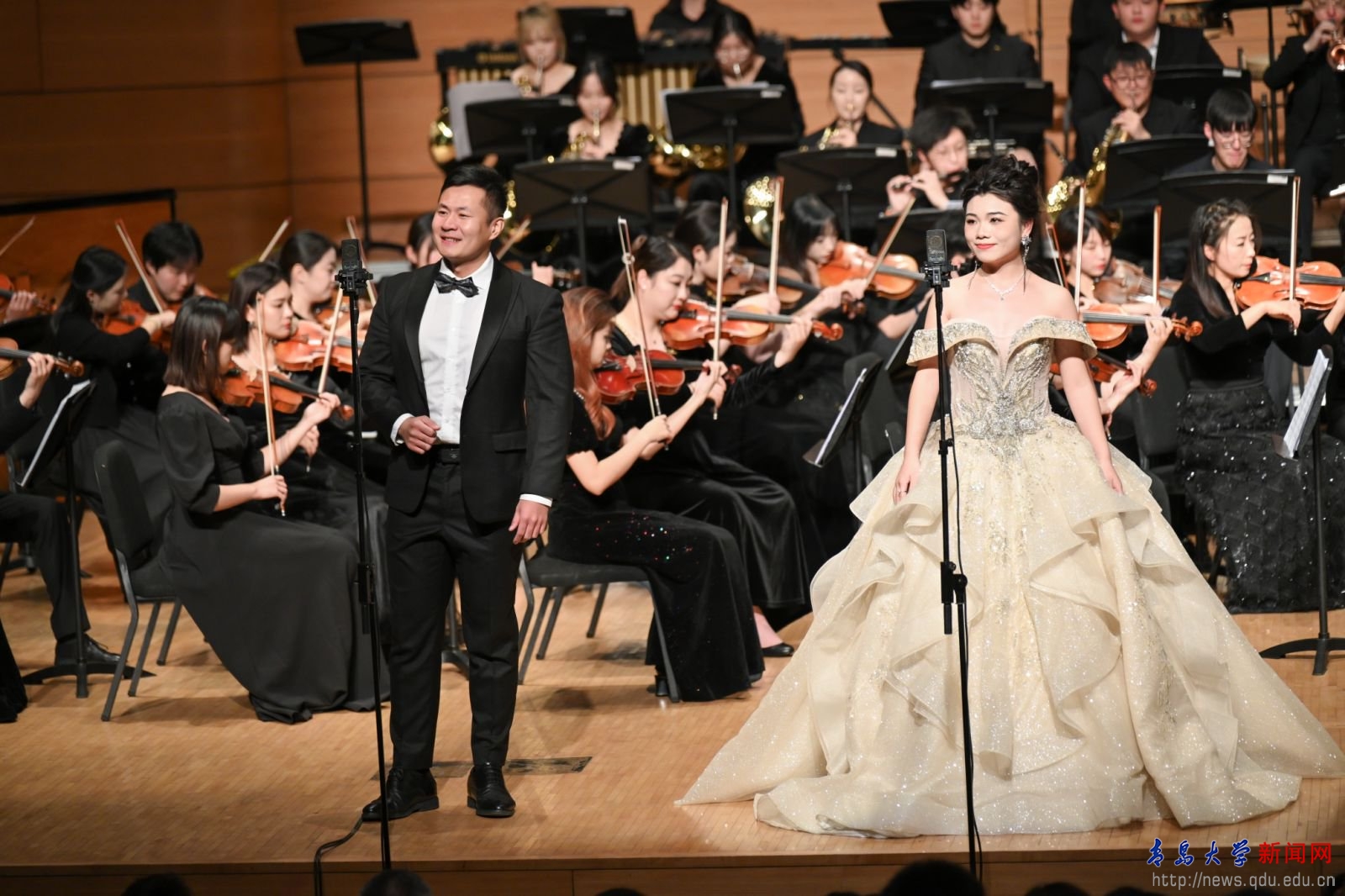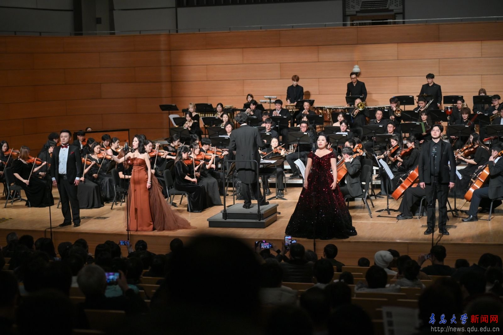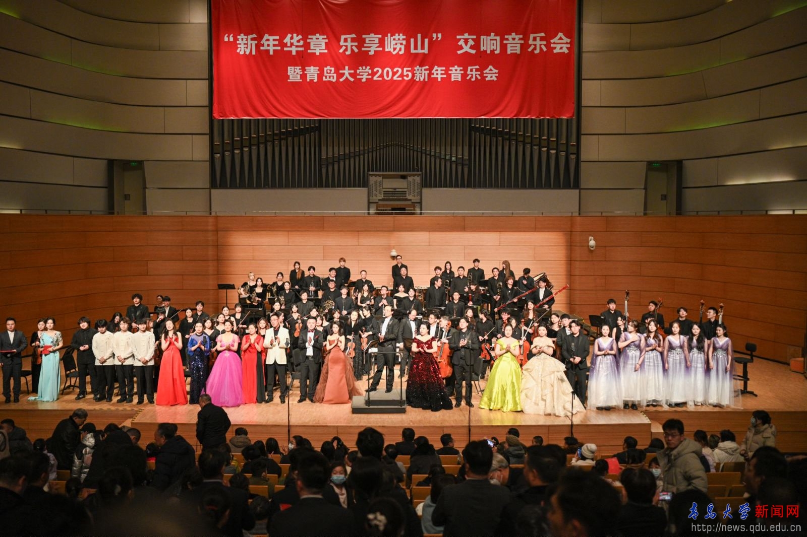 新闻网讯 岁序更替,华章日新。1月2日晚,“新年华章 乐享崂山”交响音乐会暨YABO鸭脖2025新年音乐会在在青岛大剧院精彩上演。校领导胡金焱、魏志强、肖江南、胡钦晓、何燕、李军、吴世珍以及来自政府、合作企业、兄弟院校、附属学校等的各界客人与学校师生医务员工和校友一起,共赏音乐盛会。YABO鸭脖交响乐团和合唱团,艺术学院声乐专业、民乐专业的教师和学生们演绎了一首首中外经典曲目,为观众带来一场精彩纷呈的视听盛宴。