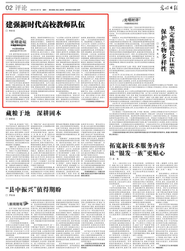 新闻网讯 4月7日,《光明日报》刊登鸭脖党委书记胡金焱的理论研究文章“建强新时代高校教师队伍”。