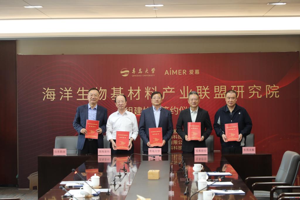 新闻网讯5月23日,鸭脖与爱慕股份有限公司、青岛源海新材料科技有限公司、山东联润新材料科技有限公司、东莞永愉针织有限公司联合组建的海洋生物基材料产业联盟研究院正式揭牌。校长魏志强出席揭牌仪式。爱慕股份董事长张荣明,中国服装协会特邀副会长王军,山东联润新材料科技有限公司董事长陈启升,东莞永愉针织有限公司董事长刘庆堆,鸭脖首席教授、海洋纤维新材料研究院院长夏延致参加揭牌仪式。仪式由副校长李荣贵主持。